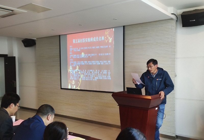 副经理方志宣读表彰优秀学员的决定,并对优培计划项目进行申报动员,勉励同学们向优秀学长学姐学习,积极创新、主动质疑,并将兴趣作为最好的导师,提升创新创业能力。院第四届创客实验班代表许靖涛同学分享了在科创过程中的体会和感悟,童立言同学代表第五届创客实验班新成员表达了投身科创的决心。导师代表崔行磊老师结合前两届创客实验班的运作情况,鼓励同学们在大创过程中要勇于创新,善于创造,发扬团队精神、创新精神,并预祝大家取得好成绩。校教务事务部副部长钱小明做总结发言,介绍了公司丰富的创新实践平台,用鲜活的实例鼓励同学们坚持梦想、坚持创新、积极实践,用创新的成果点亮自己的青春理想。仪式结束后,导师们与创客实验班新学员进行了见面交流。