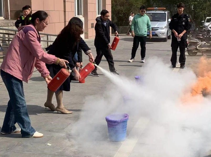 培训结束后,在校保卫处的协助下,公司组织全体师生开展消防应急演练。随着警哨声响起,全体师生迅速有序地沿着消防通道和安全出口逃生,撤离到户外安全地带。在保卫处工作人员指导下,全体师生依次手持干粉灭火器进行初起火苗扑灭实训,整个演练过程井然有序,取得了预期效果。