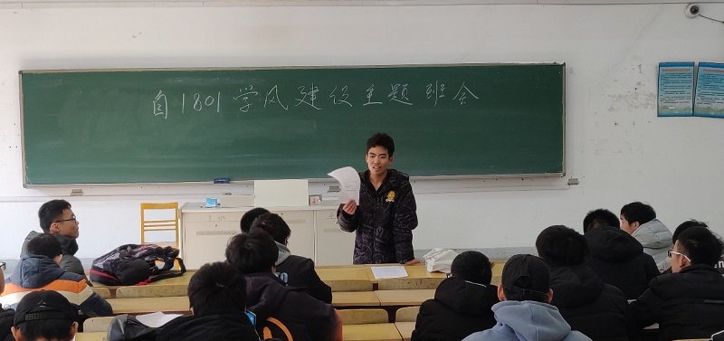 新的一学期即将迎来紧张的期末考试,为给同学们加油鼓劲,奋心学习,自1801班召开了“明德厚学,互助前行”的学风建设主题班会。