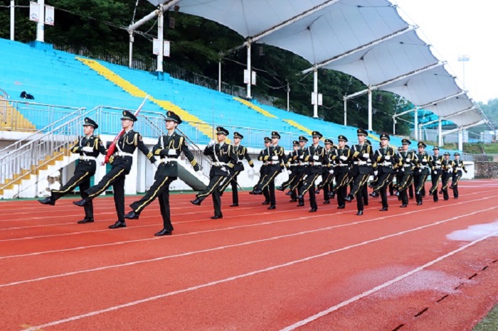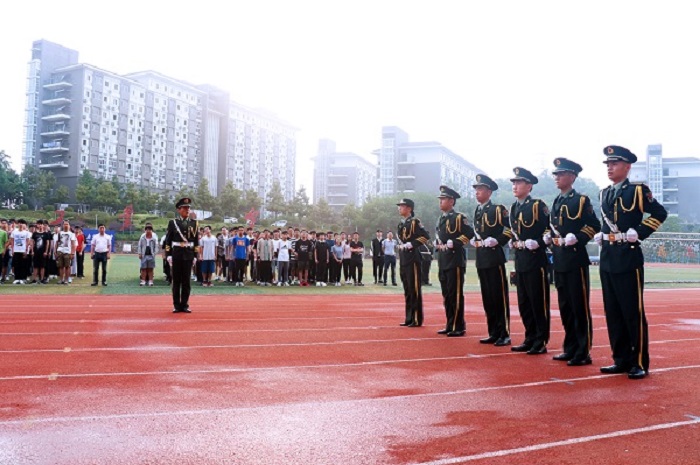 活动伊始,国旗护卫队进行了队列表演,向同学们展示了稍息、立正、跨立、齐步走、正步走、跑步走等,动作整齐利落,步伐矫健有力,精神风貌积极昂扬。随后,国旗护卫队旗手讲解了国旗法,普及了保护国旗、爱护国旗的法律常识。随后,升国旗仪式正式开始,同学们伴着雄伟庄严的国歌,同学们面朝国旗,全体肃立,行注目礼。礼毕,best365官网员工代表蒋谦进行了国旗下讲话,他呼吁同学们在校期间增强学习紧迫感,如饥似渴、孜孜不倦学习,增长知识、锤炼品格、增长才干、练就本领。