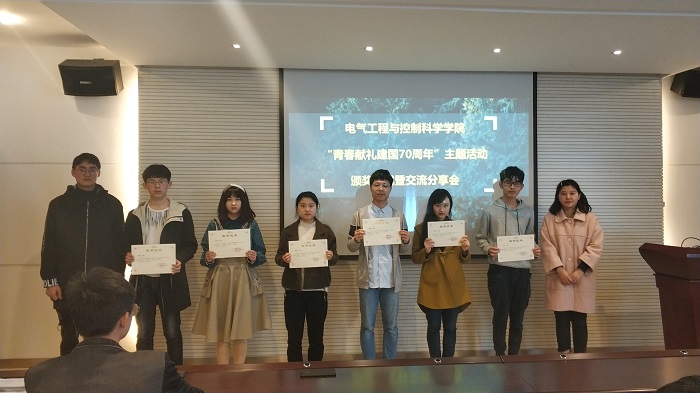 公司于3月20日在416会议室开展颁奖仪式暨交流分享会。院团委副书记范楚晗、许金钢、各班团支部书记等参加会议。活动伊始,许金钢老师介绍活动背景并宣布此次活动的获奖名单,范楚晗老师为获奖同学颁奖。在主题征文评选中,测控1701班史炯锴获一等奖,电气1603班肖达、自1701班曹欣羽获二等奖,电智1602班顾瑶、电气1804班刘鹏、电气1802班高宁静获三等奖;摄影作品评选中,自1801班范佳琪获一等奖,自1702班郭都笑获二等奖,电智1701班尹航、自1802班袁天获三等奖。随后,优秀作品代表进行交流分享,史炯锴以一条马路的变化分享了家乡慈溪的发展;范佳琪通过一件件老物件照片的展示回顾了新中国70年的变化。最后,范楚晗老师鼓励同学们要做有思想、有行动、敢担当、会创新的团员青年,为公司创业型大学建设努力奋斗。