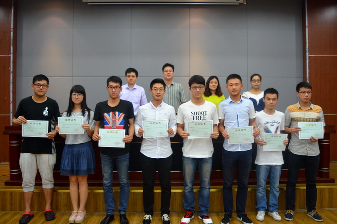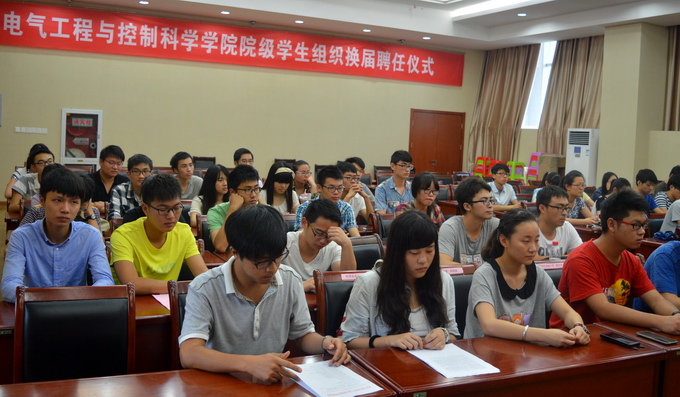 聘任仪式在庄严的《中国共青团团歌》中拉开帷幕。员工事务办公室主任刘雪老师宣读《关于表彰2014-2015学年院级员工组织优秀员工干部的决定》,院团委书记路遥老师宣读《关于陈也达等四十四名院级员工组织员工干部任职的通知》。主席台就坐的领导老师分别为上一届和新一届员工干部代表颁发荣誉证书和聘书。