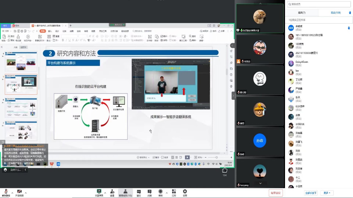 活动采取腾讯会议形式进行,6位研究生代表分别来自自动化、电气工程及其自动化、测控技术、智能制造、机器人工程等相关专业实验室,他们通过线上PPT展示、视频直播等方式,向新生们介绍了本实验室的研究方向、实验设备和主要研究项目以及进展情况,同时演示了相关仪器设备的操作规范和运行效果。广大新生对各实验室的介绍和展示表现出浓厚的兴趣,纷纷通过弹幕聊天以及互动环节进行提问,各研究生代表逐一进行了解答,并鼓励新生尽早走入实验室,开展相关科研训练,为后续的专业学习和科研实践打基础。