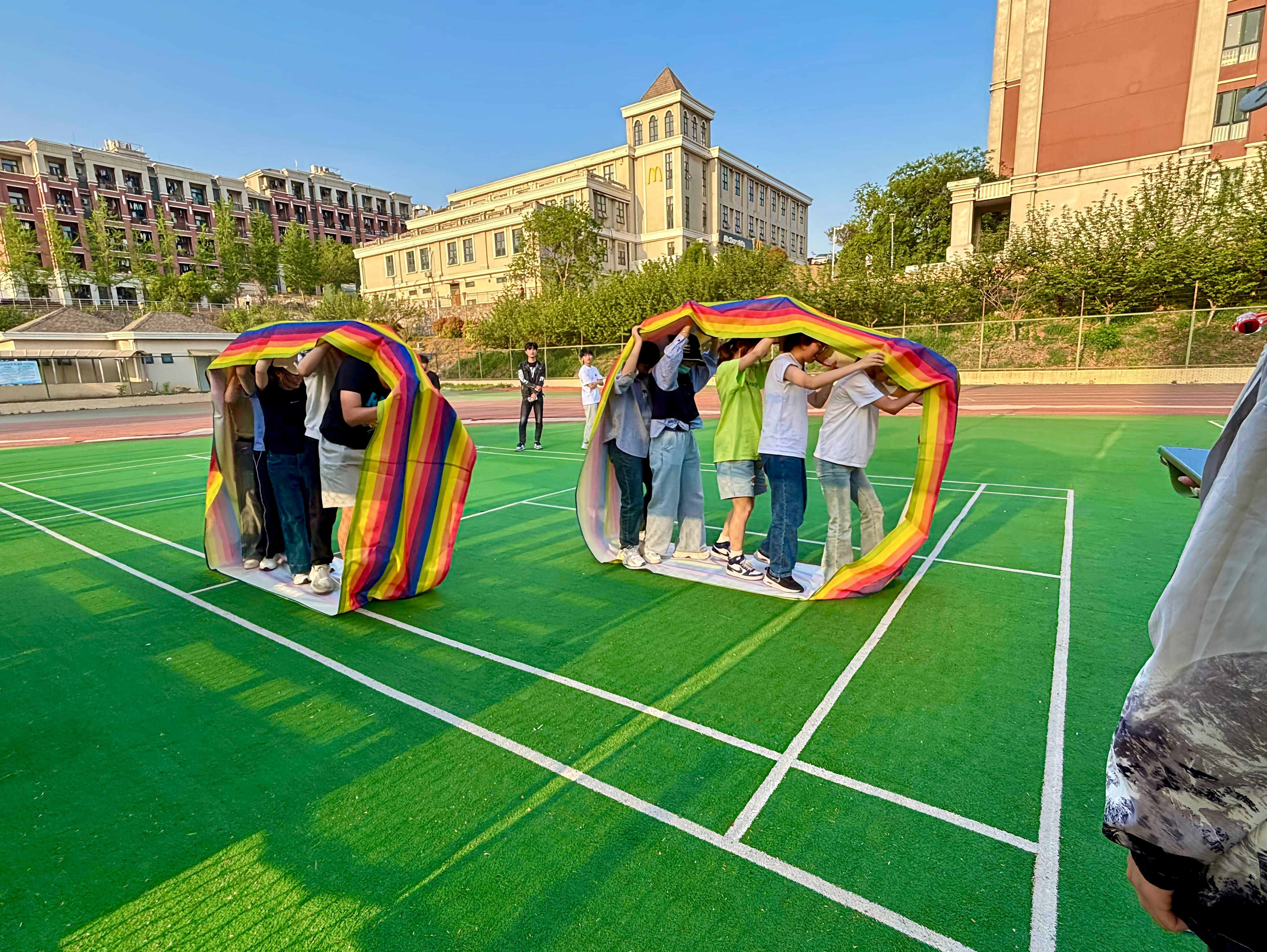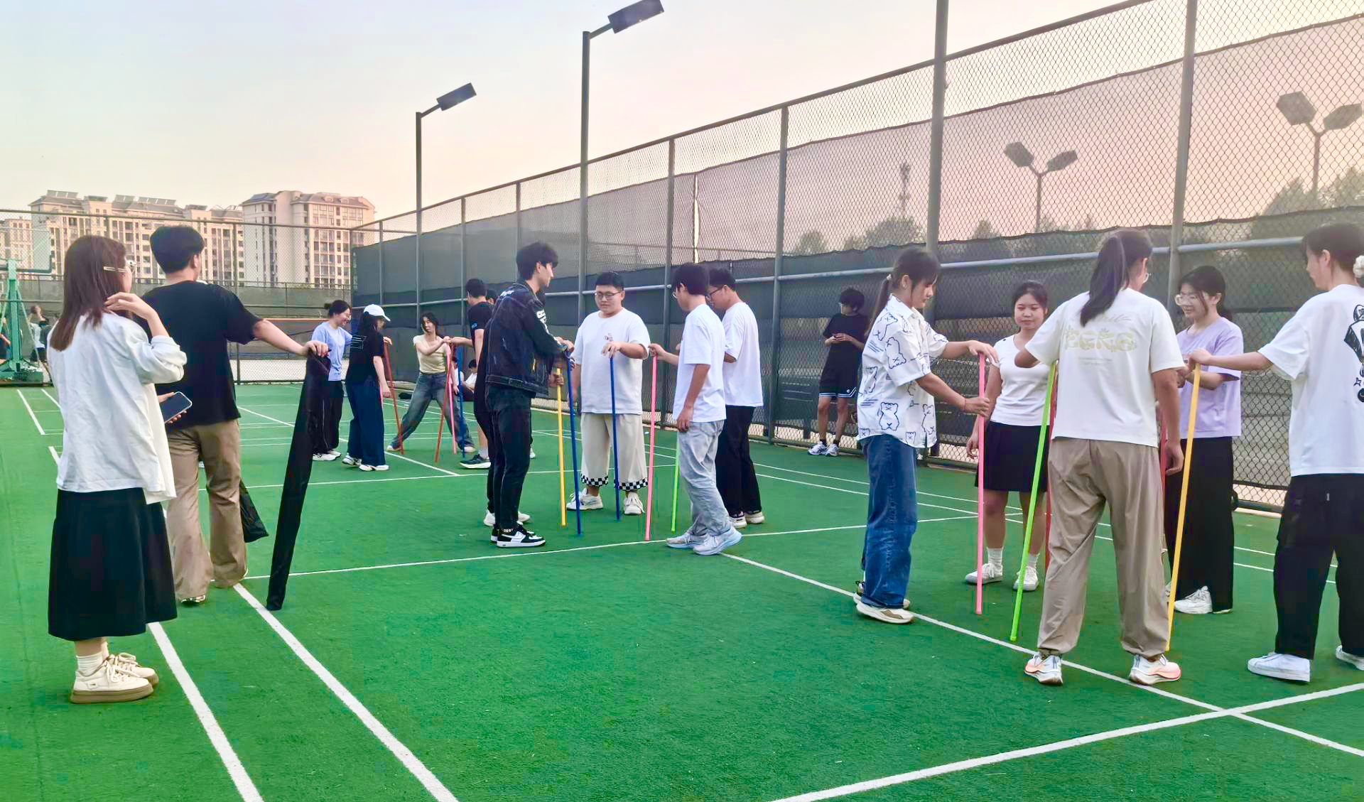 本次运动会以"团结协作,快乐成长"为主题,精心设计了三个富有教育意义的团队竞赛项目。在"不倒森林"环节,参赛队员需要默契配合,共同控制长杆保持平衡;"无敌风火轮"项目考验团队的协调性和同步性;"摸石过河"则着重培养队员的资源分配能力和战略思维。经过激烈角逐,第一组凭借出色的团队配合获得冠军。