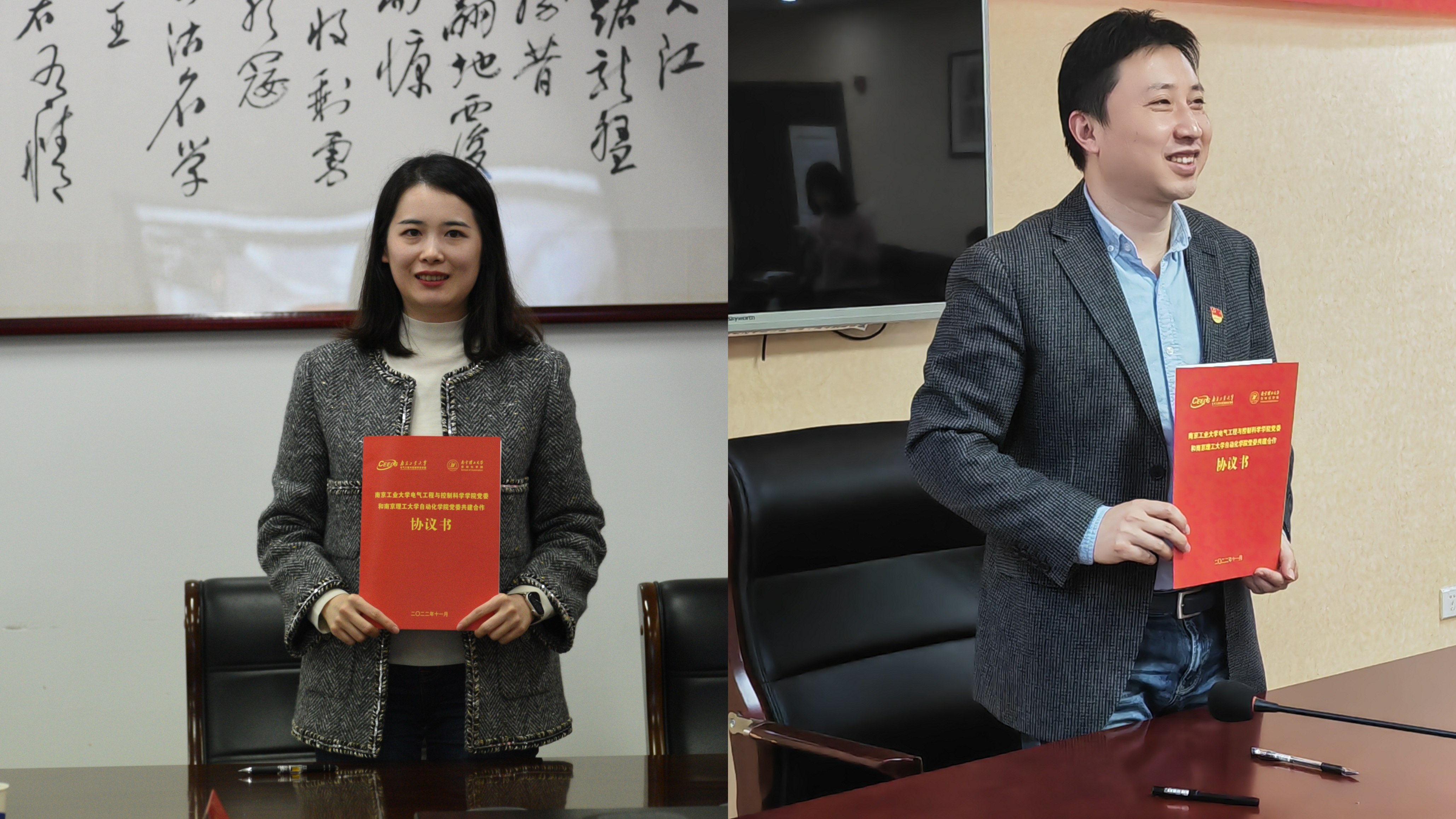 陈晨子书记和屈艺书记并分别就标杆院系培育创建工作做交流,方志经理、南理工自动化公司杨力经理分别介绍公司建设发展情况,双方以“云签约”形式达成全面共建合作协议。